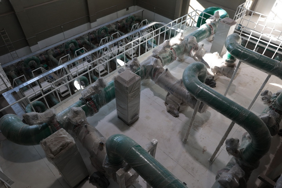 Проектом предусмотрено строительство руслового водозабора с водоприемными оголовками, насосных станций первого, второго и третьего подъемов, водоочистных сооружений мощностью 20 тыс. м3/сут с микрофильтрацией, осветлением и обеззараживанием воды.